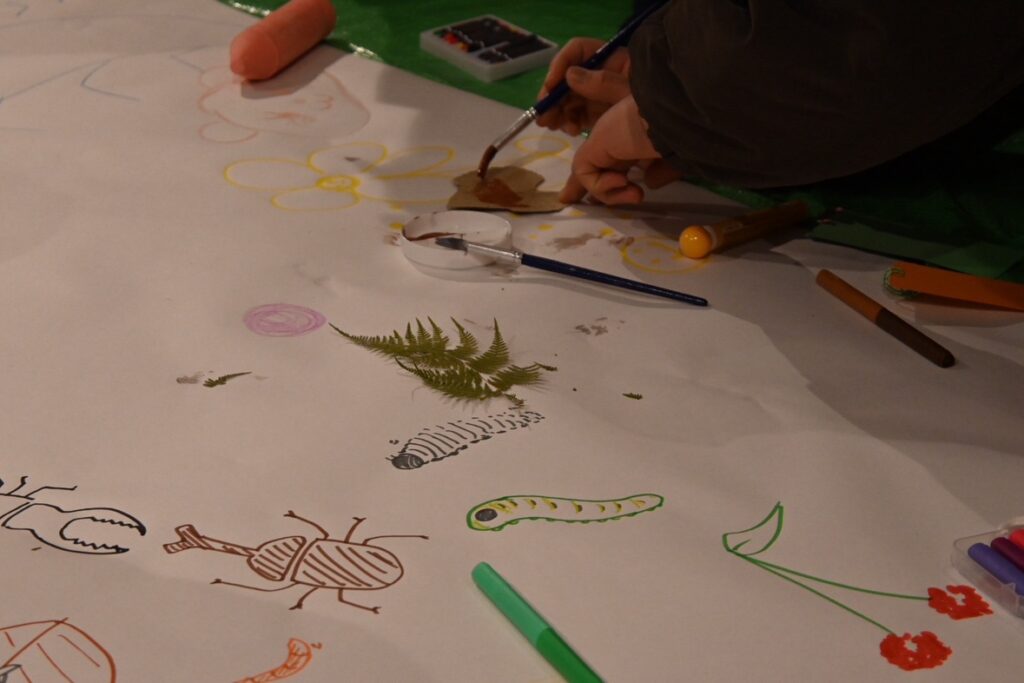 スペースを広々使って絵を描く時間は、大人も思わず夢中になってしまうひとときでした🌈