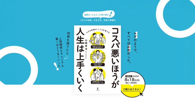 コスパ悪い方が人生は上手くいく TOP 著者プロフィール イベント情報 推薦者の声 ご購入はこちら 「まちの本屋」の生き方、待望の書籍化 ※2025年8月10日もしくは11日付 メディア情報 コスパ?タイパ?スペパ?―― … 続きを読む コスパ悪いほうが人生は上手くいく