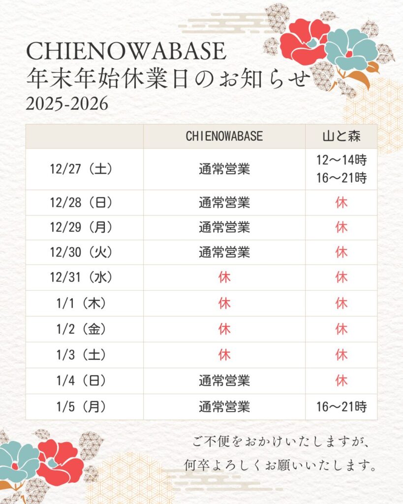 誠に勝手ながら、上記の通り年末年始の休業をいただきます。